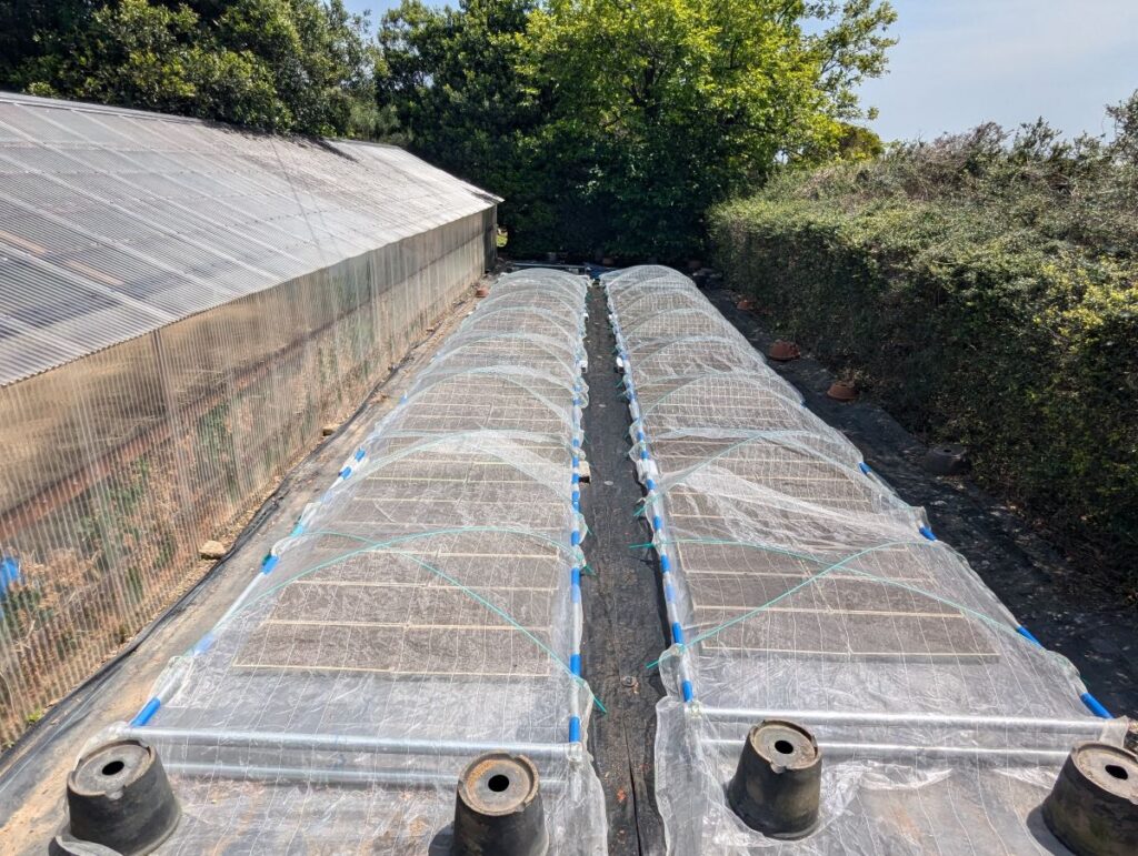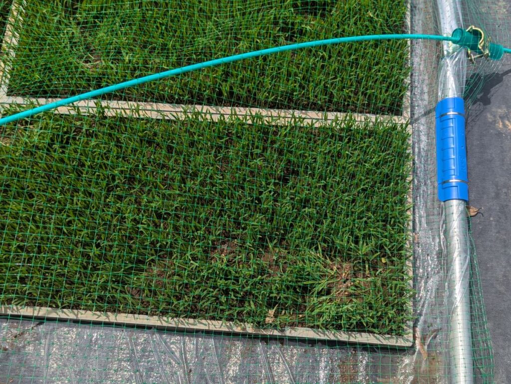 光をちゃんと当てるために、寒冷紗を鳥よけネットに取り換えて、2日後。