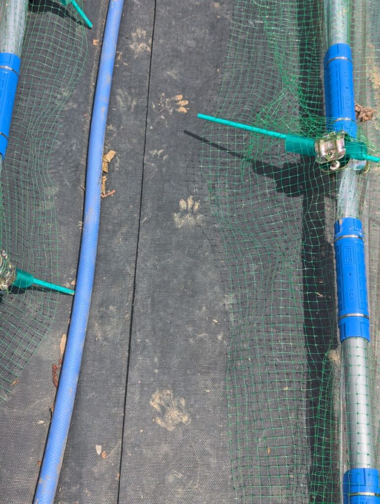 育苗プールの育苗箱に、動物に乗られる被害が発生!