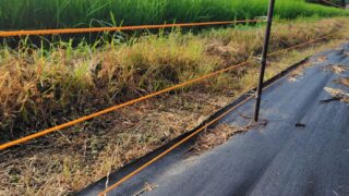 果樹 鳥獣害対策、いつの間にか、ハクビシンではなく、アライグマになっていたらしい・・・・・と言う事で、最終手段、電気柵!!